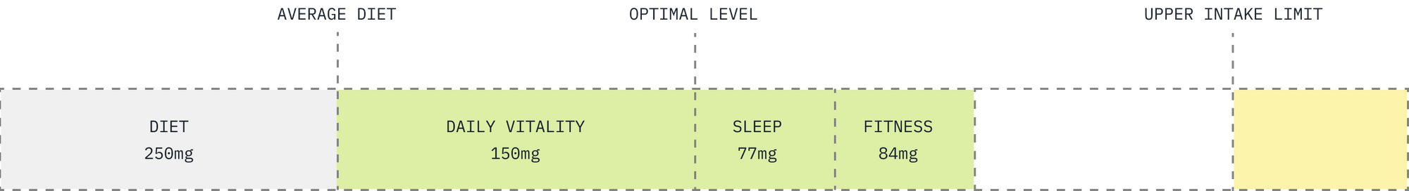 We calculate what an average healthy diet already provides, and we dose to fill the gap to the optimal level—preventing waste.