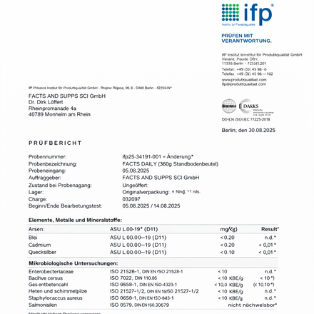 Die Daten. Wir finden: Du solltest sehen, was wir sehen. Unten findest du die neuesten unabhängigen Analysezertifikate vom IfP Institut für Produktqualität.
